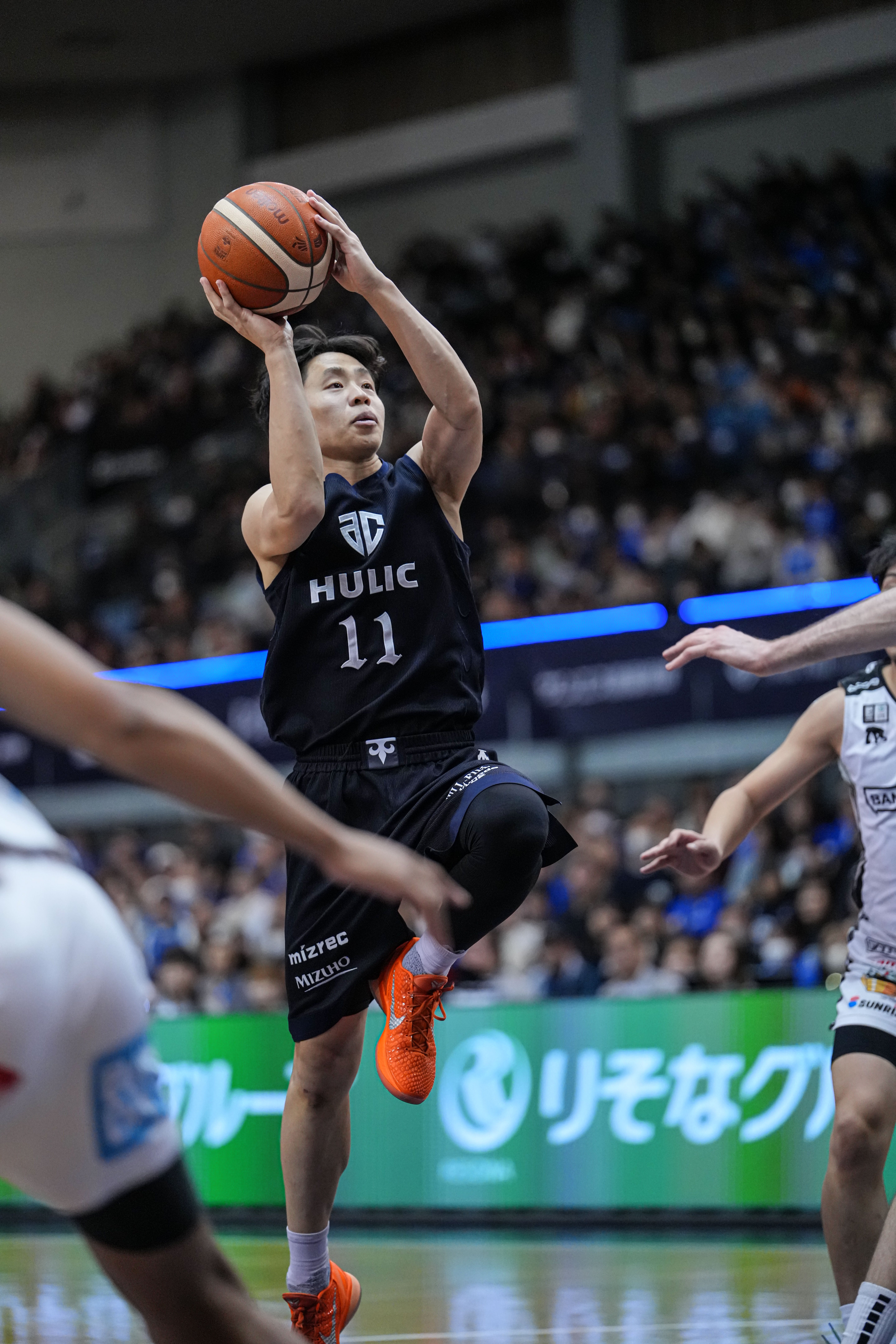 それでも確率が上がらず苦戦をするが、パードン選手が前半13得点、オルジョビ選手がAND1で応戦して前半終了。