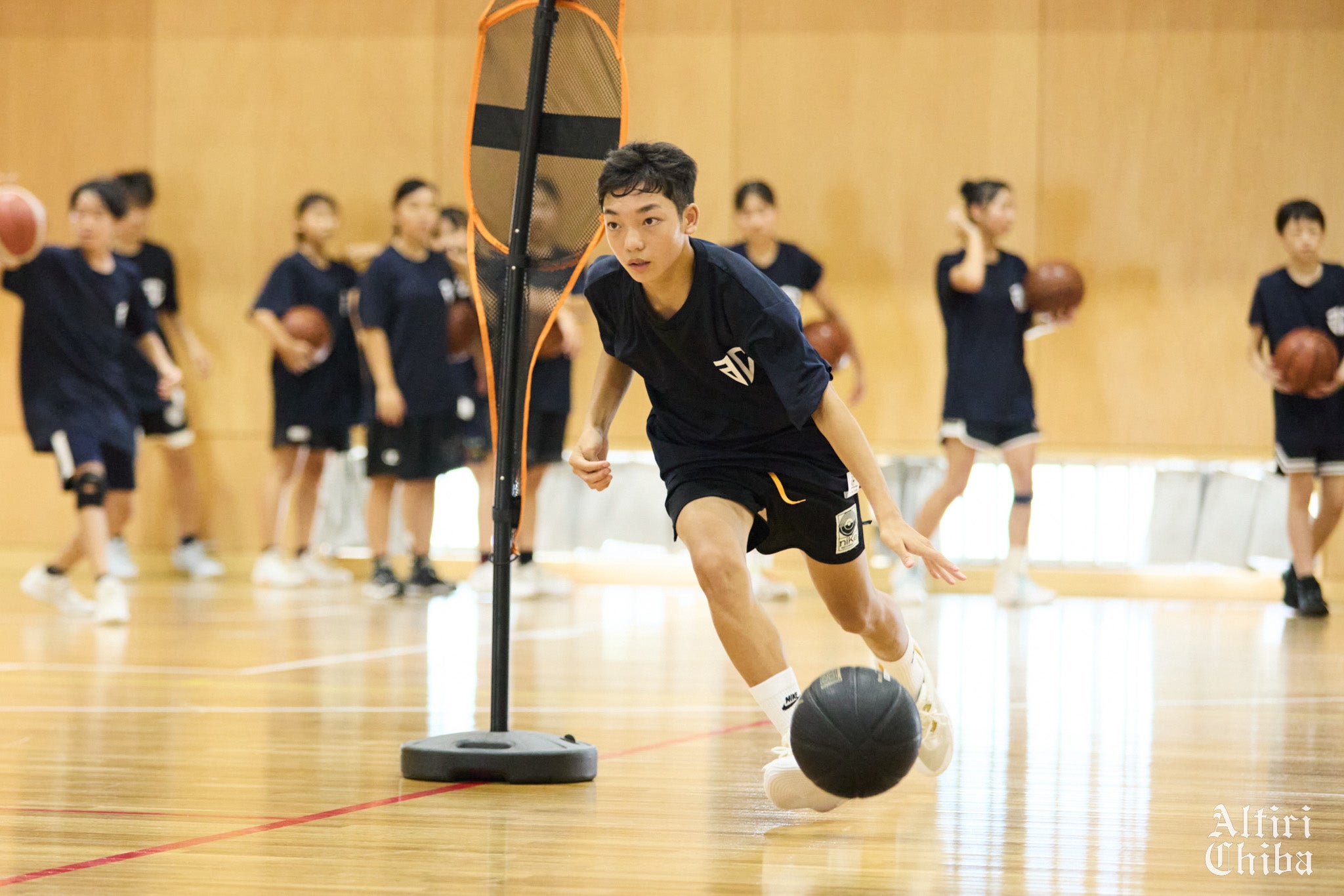 基礎的なハンドリング技術の向上から実戦を想定したプレー技術の強化を目的とする幅広いメニューに取り組んでいただき、最後にはアルティーリ千葉U15・U18で取り入れている練習メニューにも挑戦していただきました。