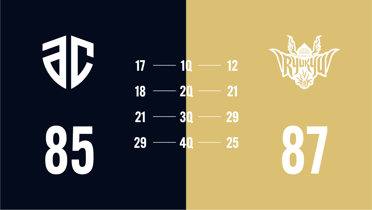そこからブザーがなるまで激しいリードチェンジが繰り返されるが、ラスト0.9秒で琉球の3Pを許し、悔しい敗戦を喫する。