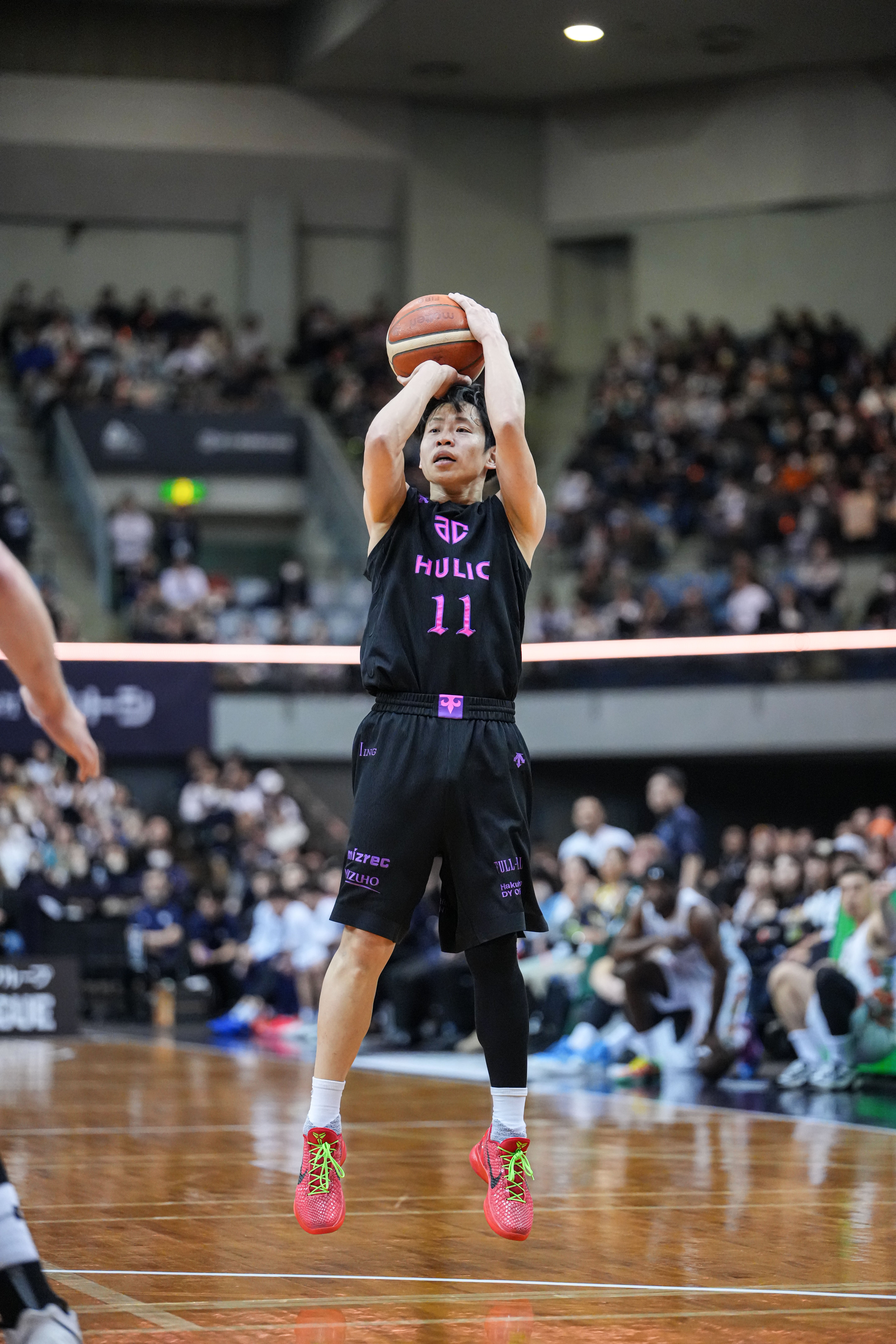 オフェンスでは、杉本選手や前田選手の3Pで勢いづけると、パードン選手のプットバックや不意をつく黒川選手の3Pでスコアを重ねて1Q終了。